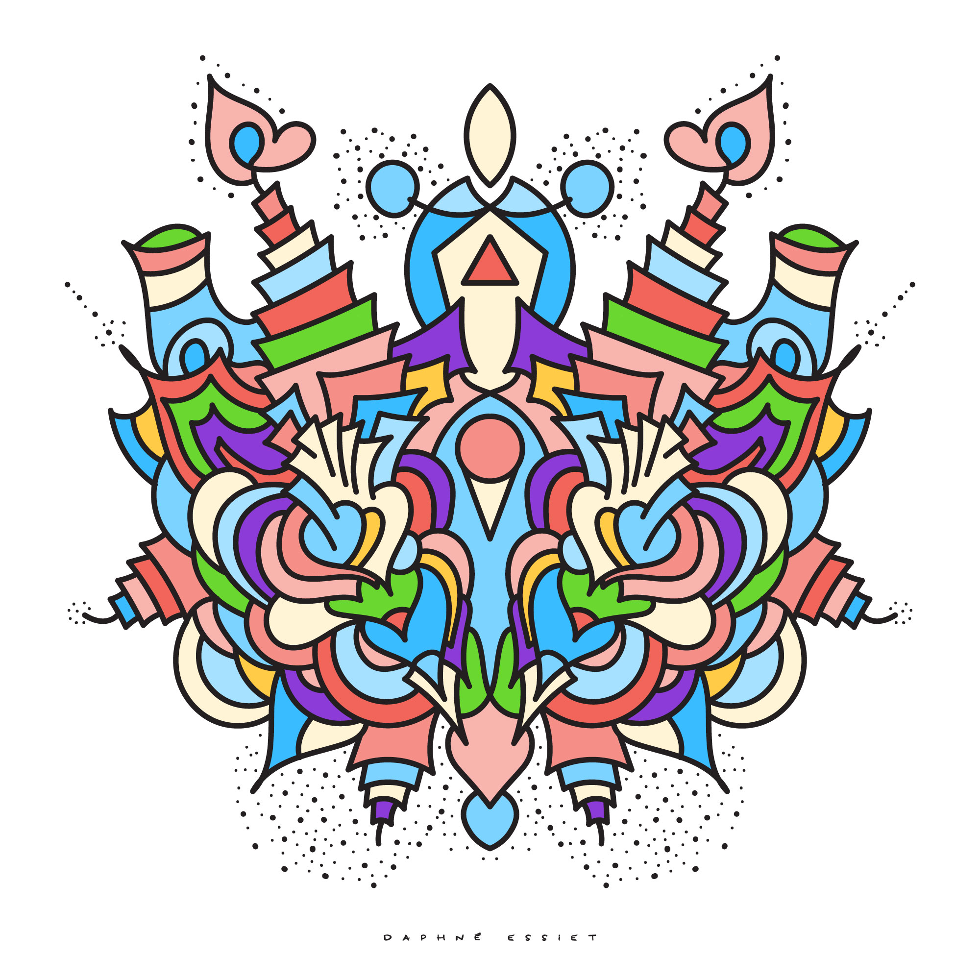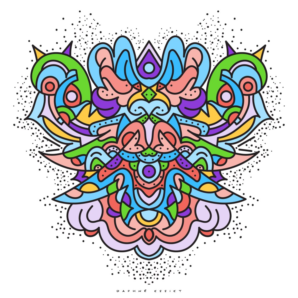 When I started my artistic practice back in 2018, symmetrical designs were one of the first type of drawing I experimented with, and honed my illustrator skills by creating my Chromatic Ecstasy collection:
