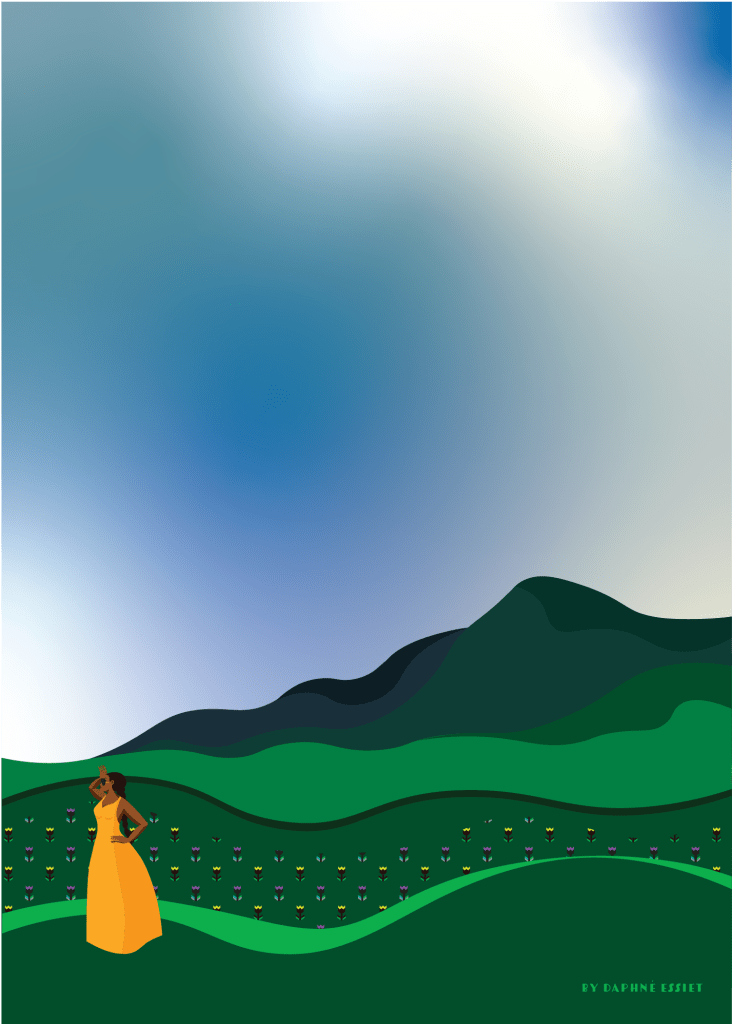 –“I’d said more like Jada”. Pendant qu’ils débattaient, j’auscultait méticuleusement mon plat. Je distinguais certains aliments: il y avait du poulet frit. Peut être des patates? un gratin de pates? puis quelque chose qui ressemblait à des l’épinard, mais qui n’en était pas. Devant mon visage interloqué Kojo m’expliquait gentiment la composition de mon assiette: